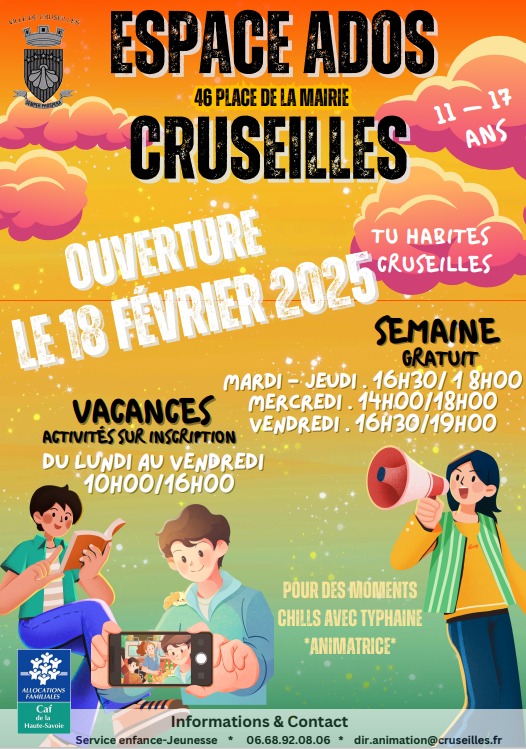 Pour toute demande d’information, contactez le service enfance-jeunesse au 06.68.92.08.06 ou par mail à dir.animation@cruseilles.fr